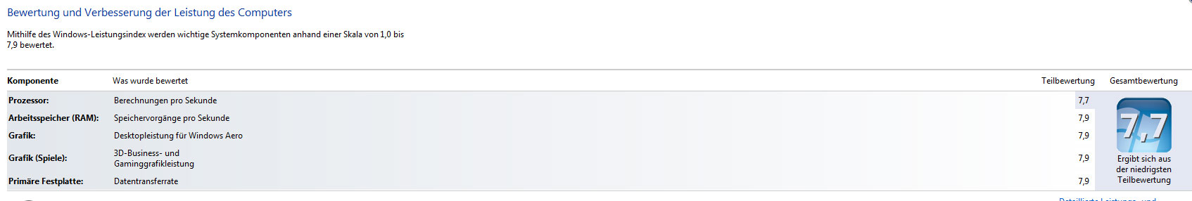 Hat schon jemand einen PC gesehen, der durchweg 7,9 erreicht? Ich wage zu bezweifeln, dass die Investitionen gegenüber eines 7,6 PC die Mehrleistung wert sind. Wenn überhaupt jemand diesen Wert erreichen sollte, dann sicherlich nur im Labor ...