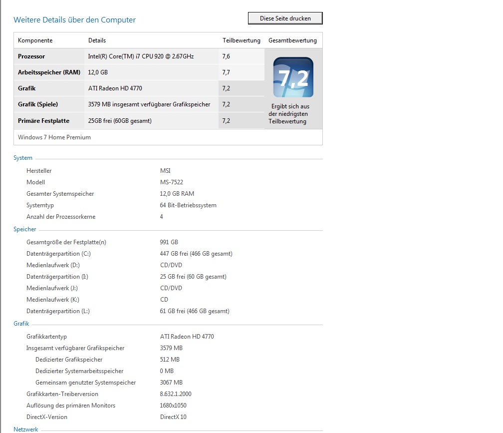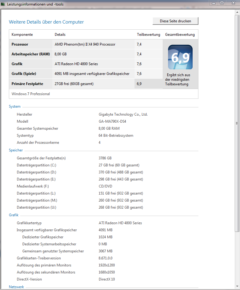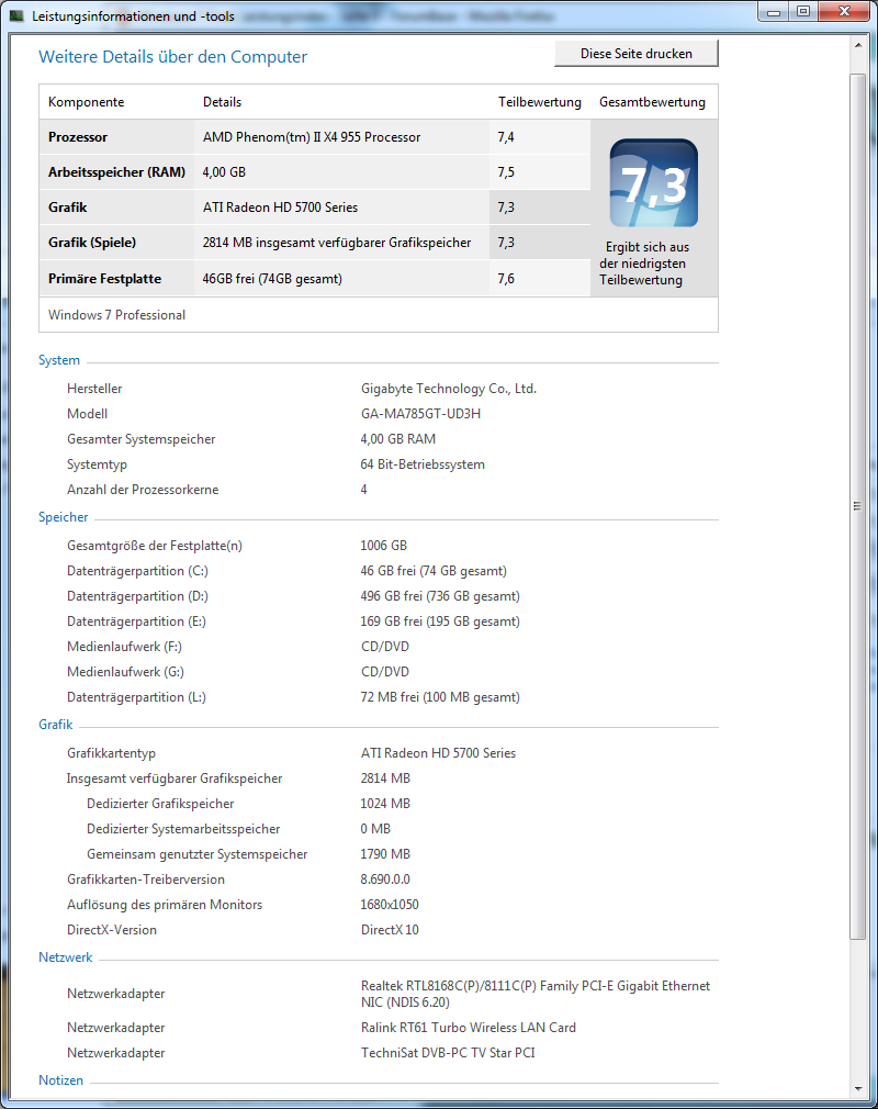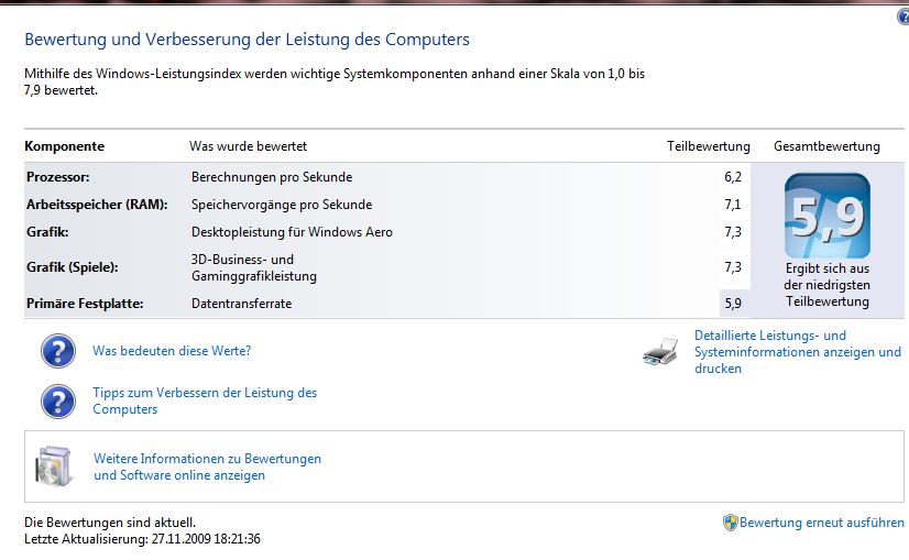 Irgendwie habe ich das Gefühl, dass Du nicht die richtigen Treiber installiert hast, oder das bei Dir irgendwas anderes rumspinnt. Denn eigentlich sollte die Aero-Bewertung nicht so viel schlechter sein, als die Spiele-Bewertung, eigentlich sollten die Beiden gleichauf, oder Aero besser sein als Spiele. oÔ