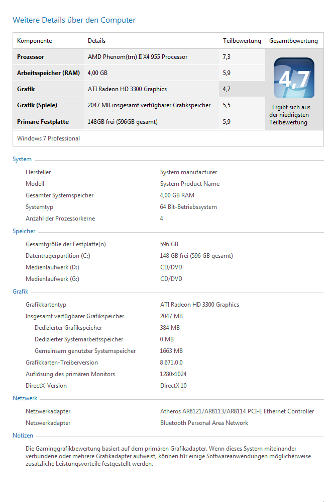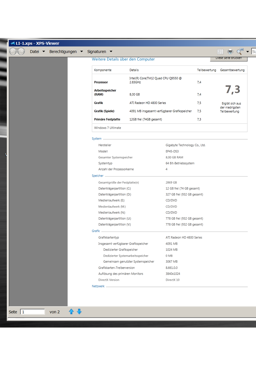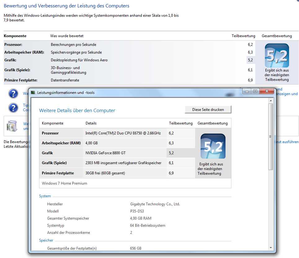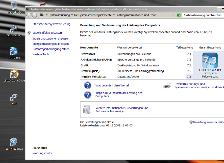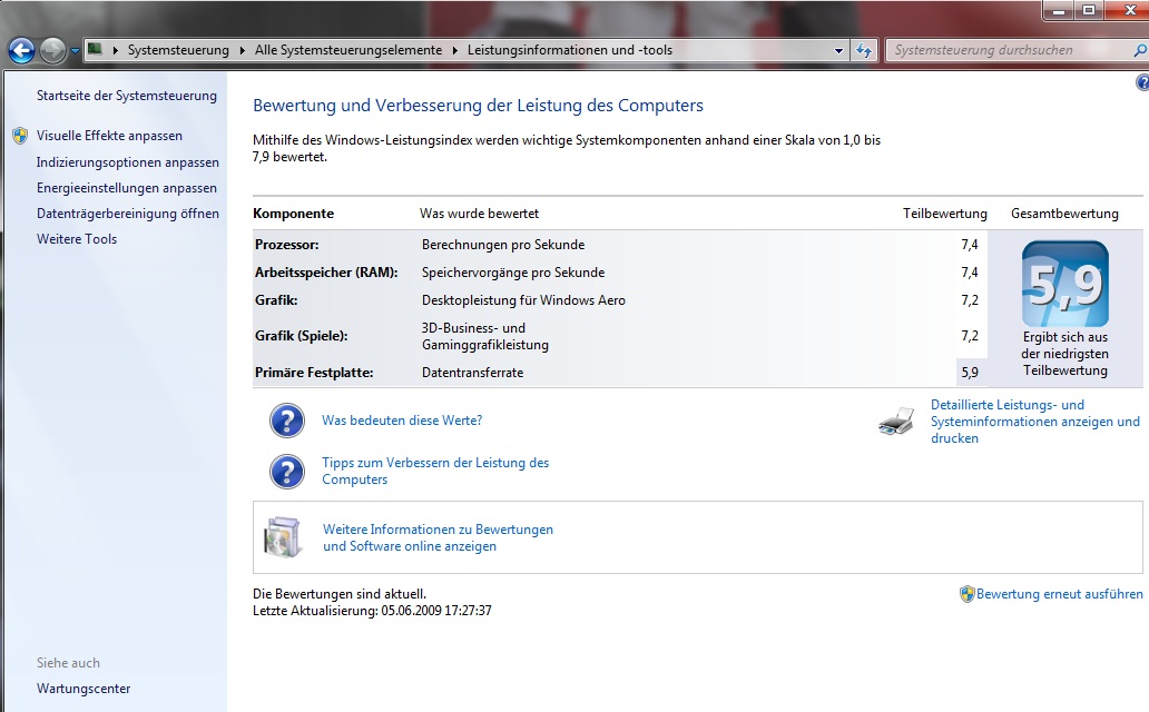 Hui, mit den neuesten ATi-Treibern (9.11 statt 9.10) stieg doch der Wert für meine Grafikkarte (HD Radeon 4850 Golden Sample von Gainward) doch glatt von 7,3 auf 7,4.