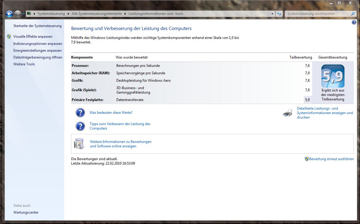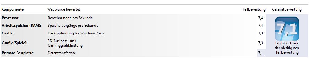 Naja bei Vista hatte ich 5,9 Bewertung überall