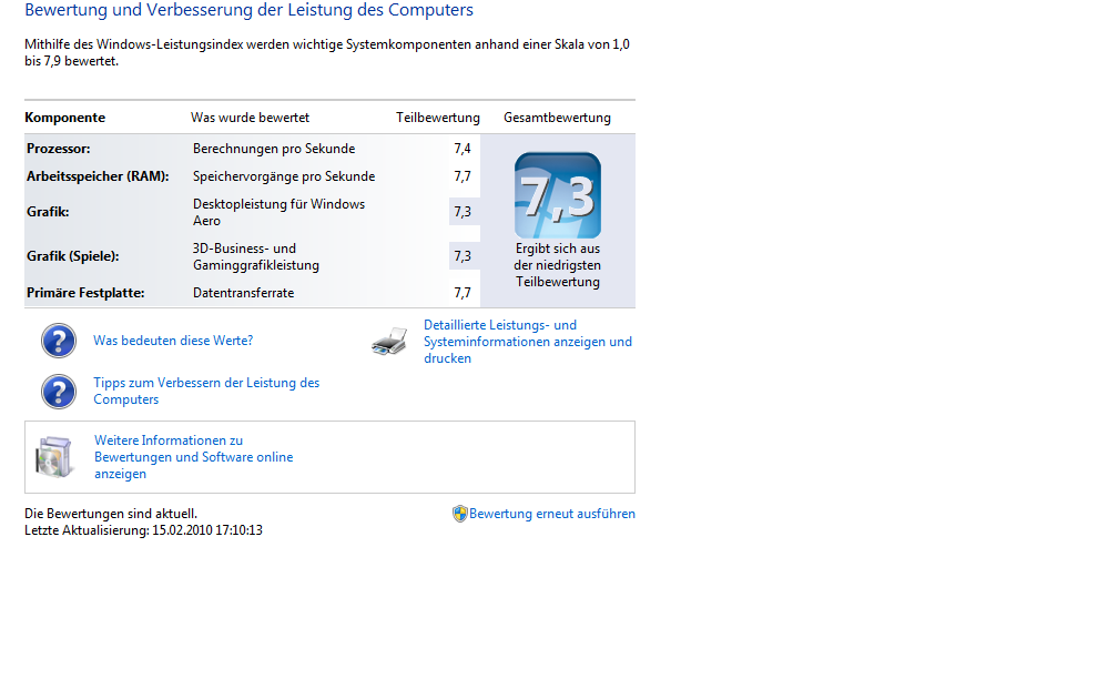 Komischerweise wird meine CPU immer unterschiedlich bewertet. mal mit 7,2 und mal mit 7,3^^
