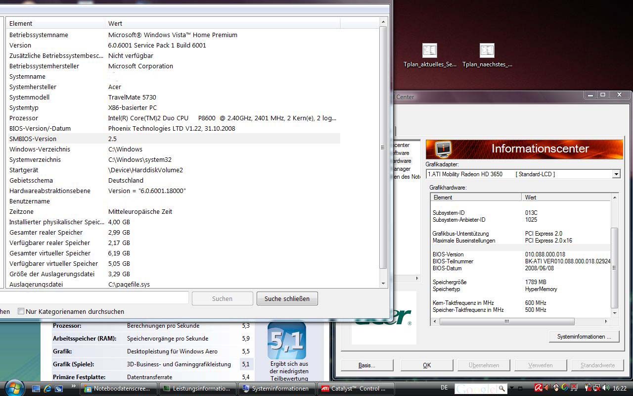 Acer 5730G Notebook mit win vista premium x86
