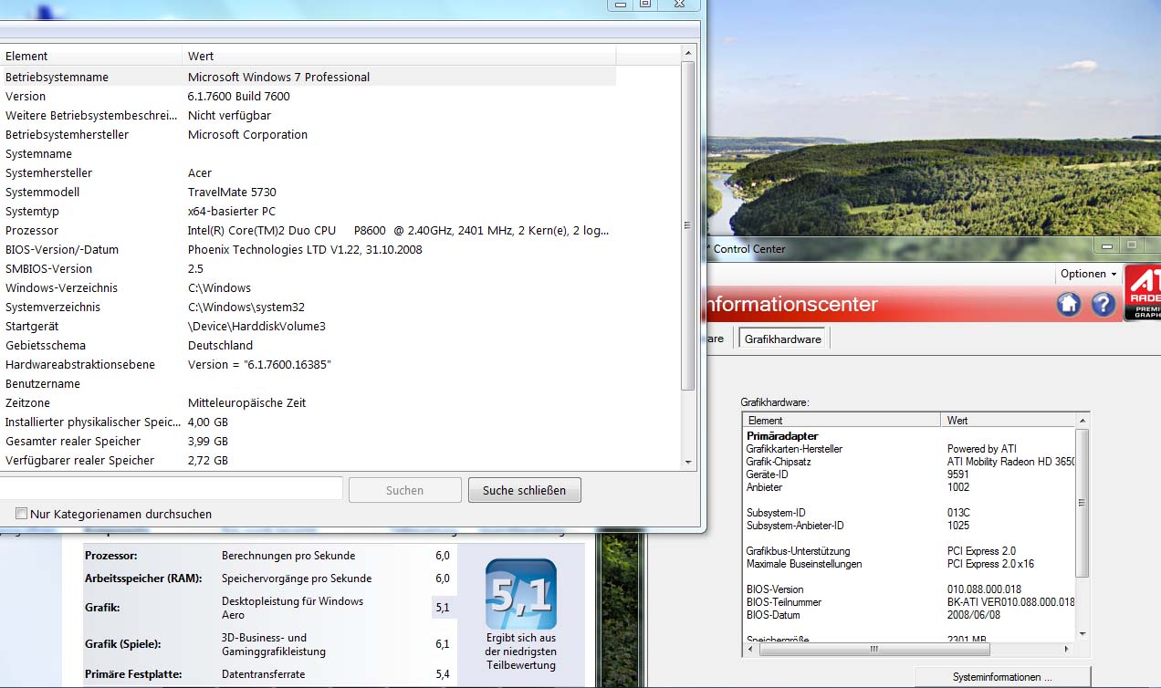 Irgendwie scheint sich Microsoft bei der Grafikkarte nicht ganz entscheiden zu können. Bei win Vista ist angeblich die "Gamingpower" schlecht, bei win 7 die AERO-Power. Kann aber auch am Treiber von ATI liegen, die bei mir auch noch unterschiedlich sind, weil Acer unterschiedliche Treiber für die beiden Betriebssysteme zur verfügung stellt.