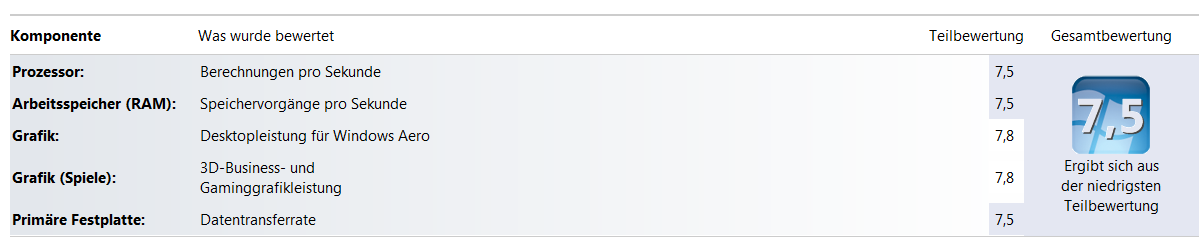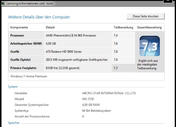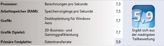Hast du die SSD mit AHCI laufen?? Ich hatte auch erst 7,3, aber mit IDE. Dann auf AHCI gewechselt und 7,7.