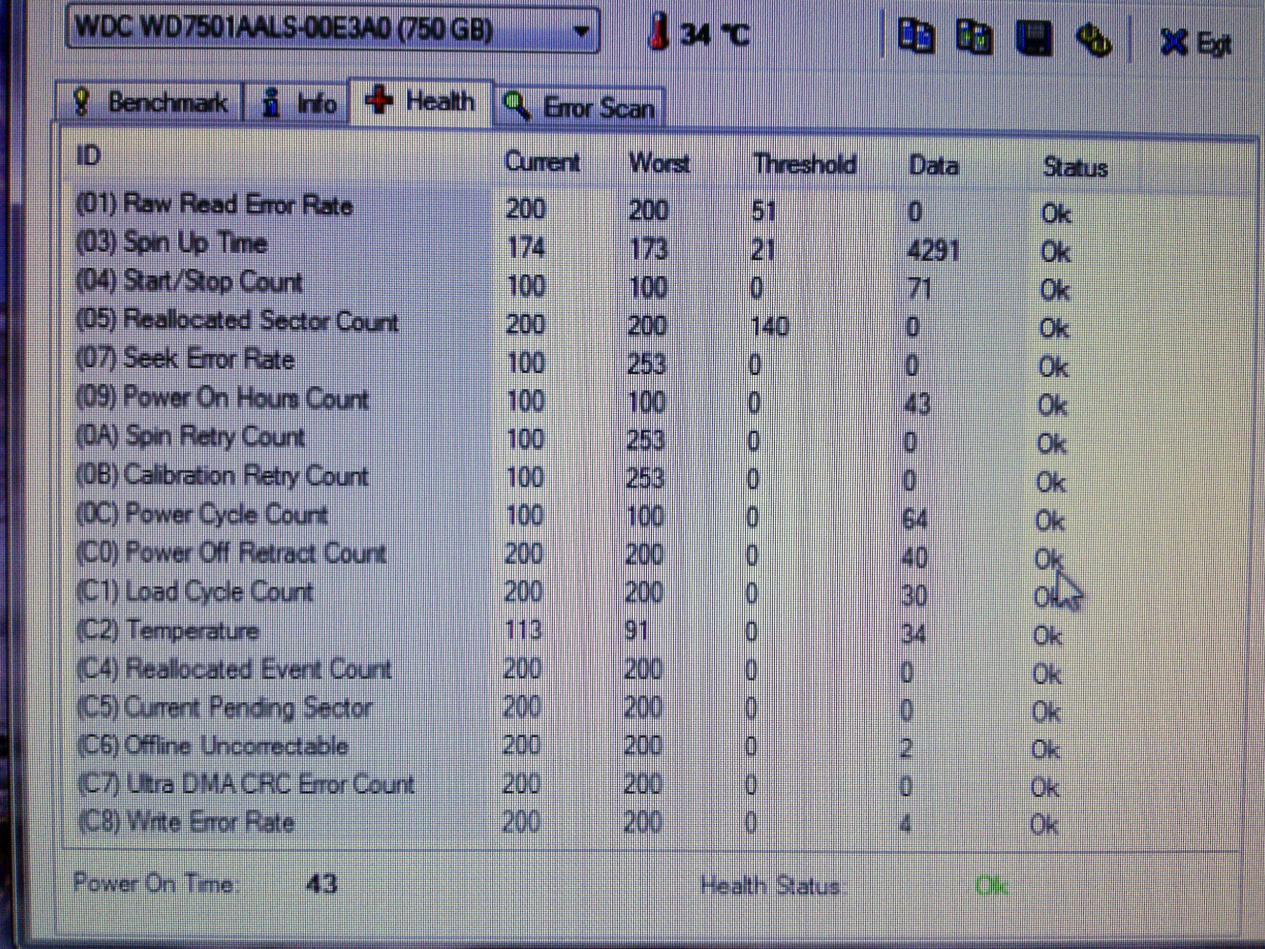 Mach bitte auch noch ein Screenshot von HDTune (Reiter Health) aller Festplatten. Gib bitte dazu an, welche deine Systemplatte ist.