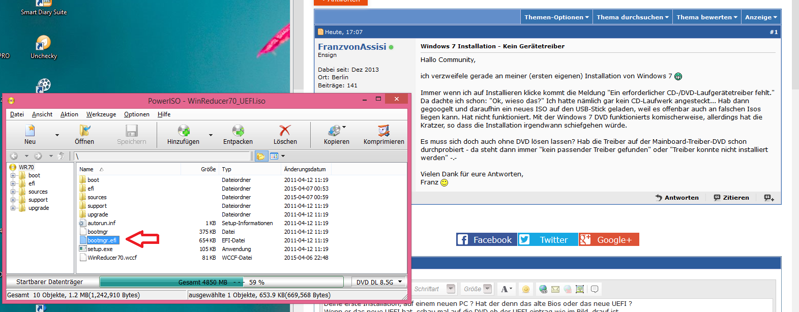 Immer wenn ich auf Installieren klicke kommt die Meldung "Ein erforderlicher CD-/DVD-Laufgerätetreiber fehlt." Da dachte ich schon: "Ok, wieso das?" Ich hatte nämlich gar kein CD-Laufwerk angesteckt... Hab dann gegoogelt und daraufhin ein neues ISO auf den USB-Stick geladen, weil es offenbar auch an falschen Isos liegen kann. Hat nicht funktioniert. Mit der Windows 7 DVD funktionierts komischerweise, allerdings hat die Kratzer, so dass die Installation irgendwann schiefgehen würde.