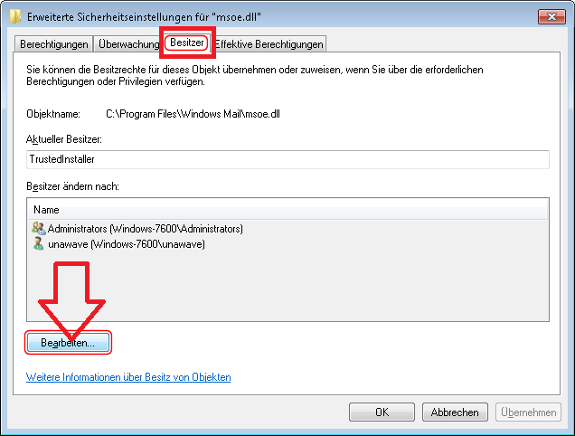 Rechtsklick auf den Ordner BOOT und Eigenschaften wählen, dann Reiter Sicherheit und dann schaue dir die Bilder an, die ich von der Homepage www.unawave.de entnommen habe. Unawave möge mir verzeihen ...