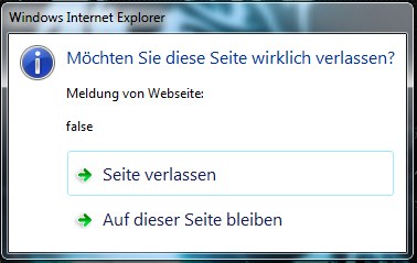 habe ein problem mit dem Internet Explorer und zwar nervt mich seit einer Geraumen zeit die warnung möchten sie die seite verlassen Meldung der seite false. Hier mal ein screen dazu.