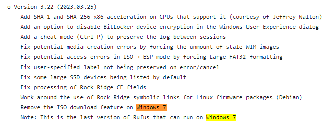 Es kann eigentlich nicht an den vier Gründen auf der anderen uralten Seite liegen, die habe ich alle geprüft beziehungsweise abgestellt. Der Stick lässt sich einwandfrei formatieren und man kann Daten problemlos hin und her kopieren. Der Windows Defender ist abgeschaltet. Es ist weder eine Firewall noch ein Virenscanner auf dem Rechner. Höher als Rufus Version 3.3 kann ich wegen Windows 7 nicht gehen.