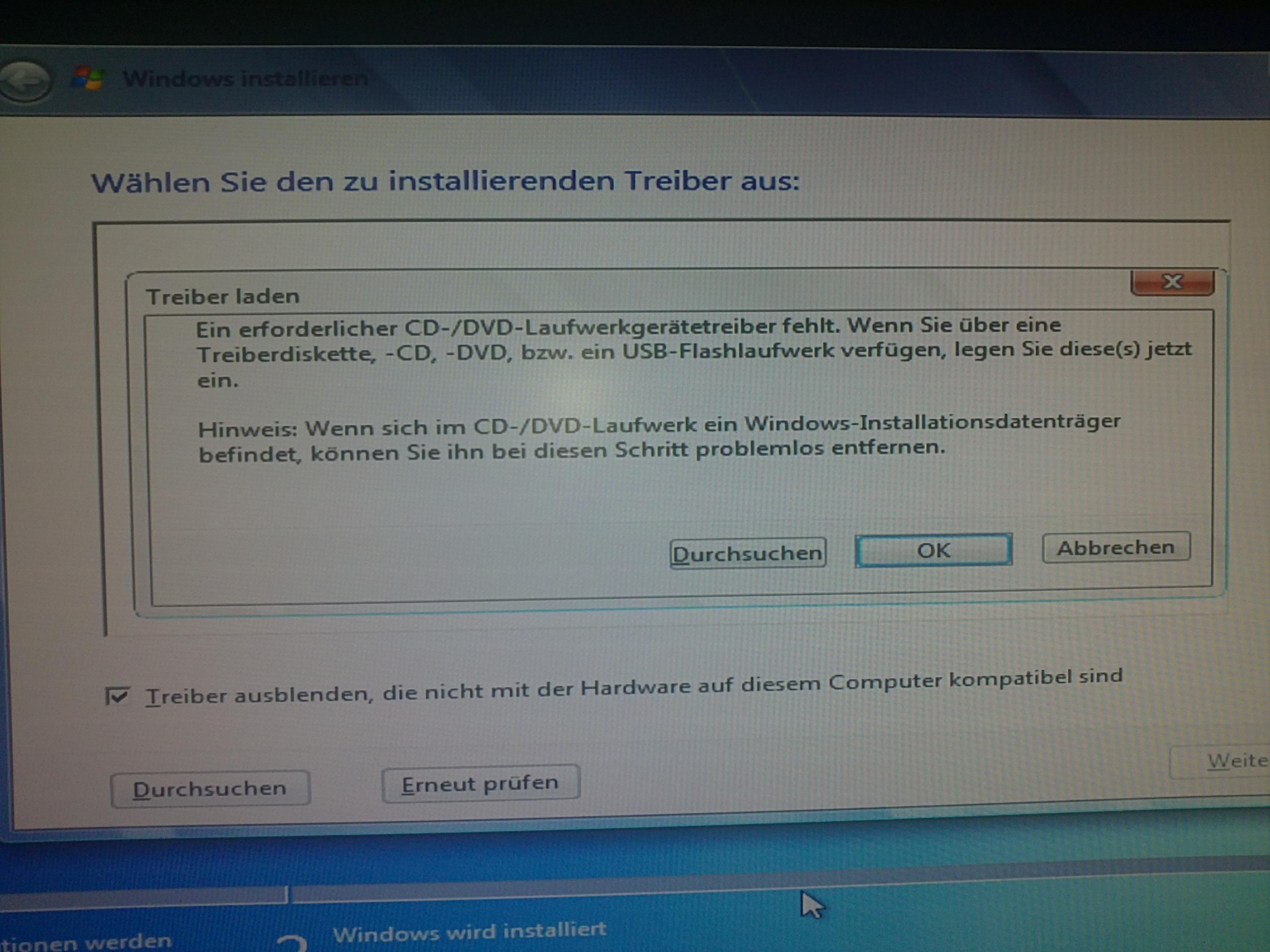 Die Installation von Windows habe ich vom Stick, als auch von DVD versucht. Den Stick habe ich an allen USB 2.0 Anschlüssen getestet.....