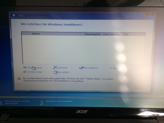 ich habe ein Problem beim installieren von Windows 7 per Original DVD auf meinem Laptop Acer TravelMate P253-E, HDD ist Seagate ST9500325AS.