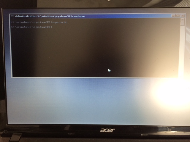-Beim hochfahren nachdem er aus war: Im AHCI Modus fragt er mich nicht danach von CD/DVD zu booten, obwohl dies als erste Boot Option eingestellt ist, sondern lädt die Windows Dateien von der DVD und bringt mich in den CMD-Modus, siehe Bild 3.