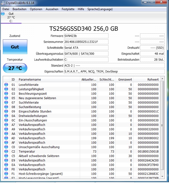 ich habe mir vor kurzem eine Transcend SSD340 zugelegt, um meinen Acer Aspire V3-571G Laptop aufzurüsten. Die SSD soll als einzige Festplatte fungieren. Als ich Windows 7 darauf installieren wollte, musste ich feststellen, dass die SSD vom Setup nicht erkannt wird, weshalb ich ein BIOS-Update durchgeführt habe. Danach wurde die SSD erkannt und ich habe Windows mit allen Updates und Treibern installiert.