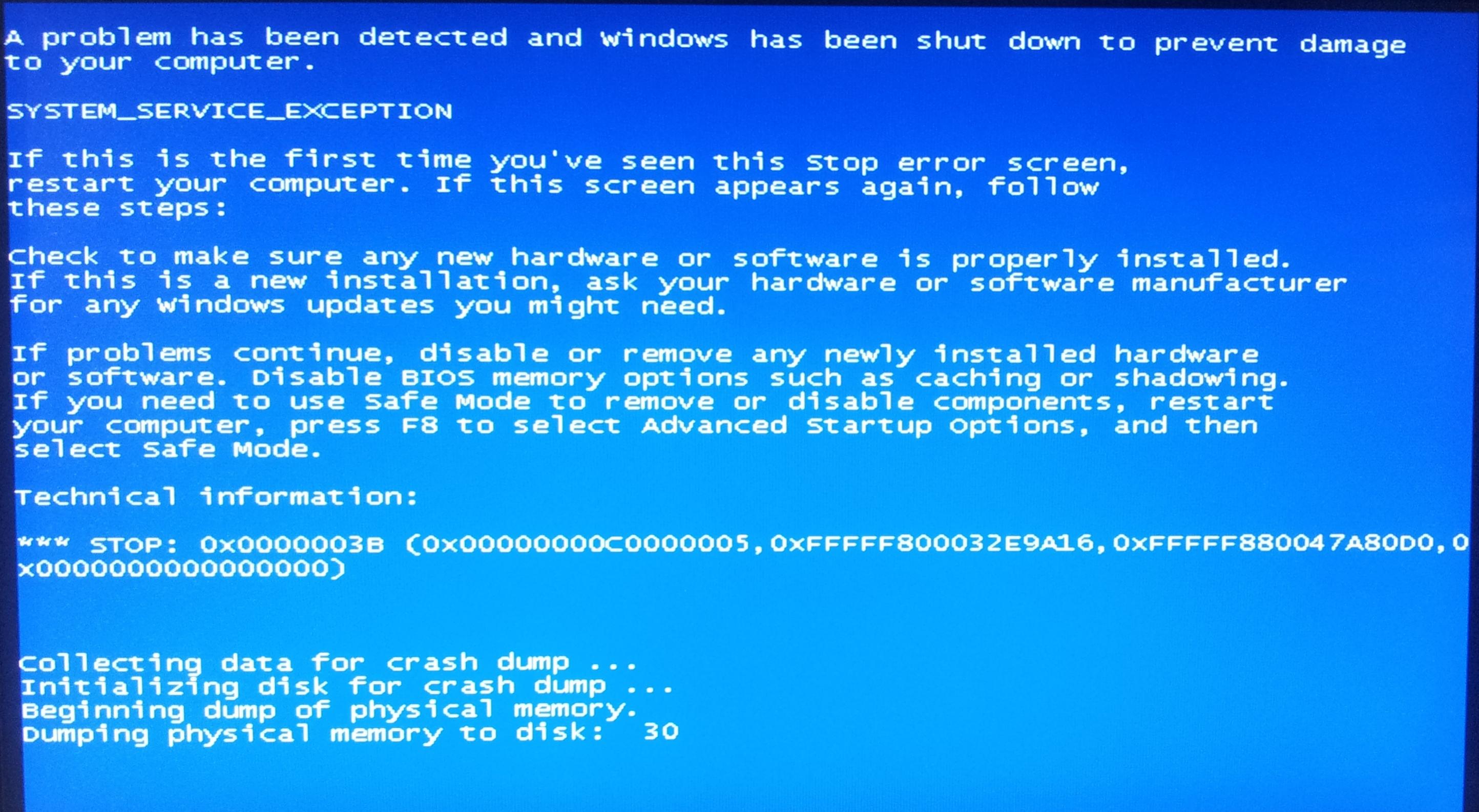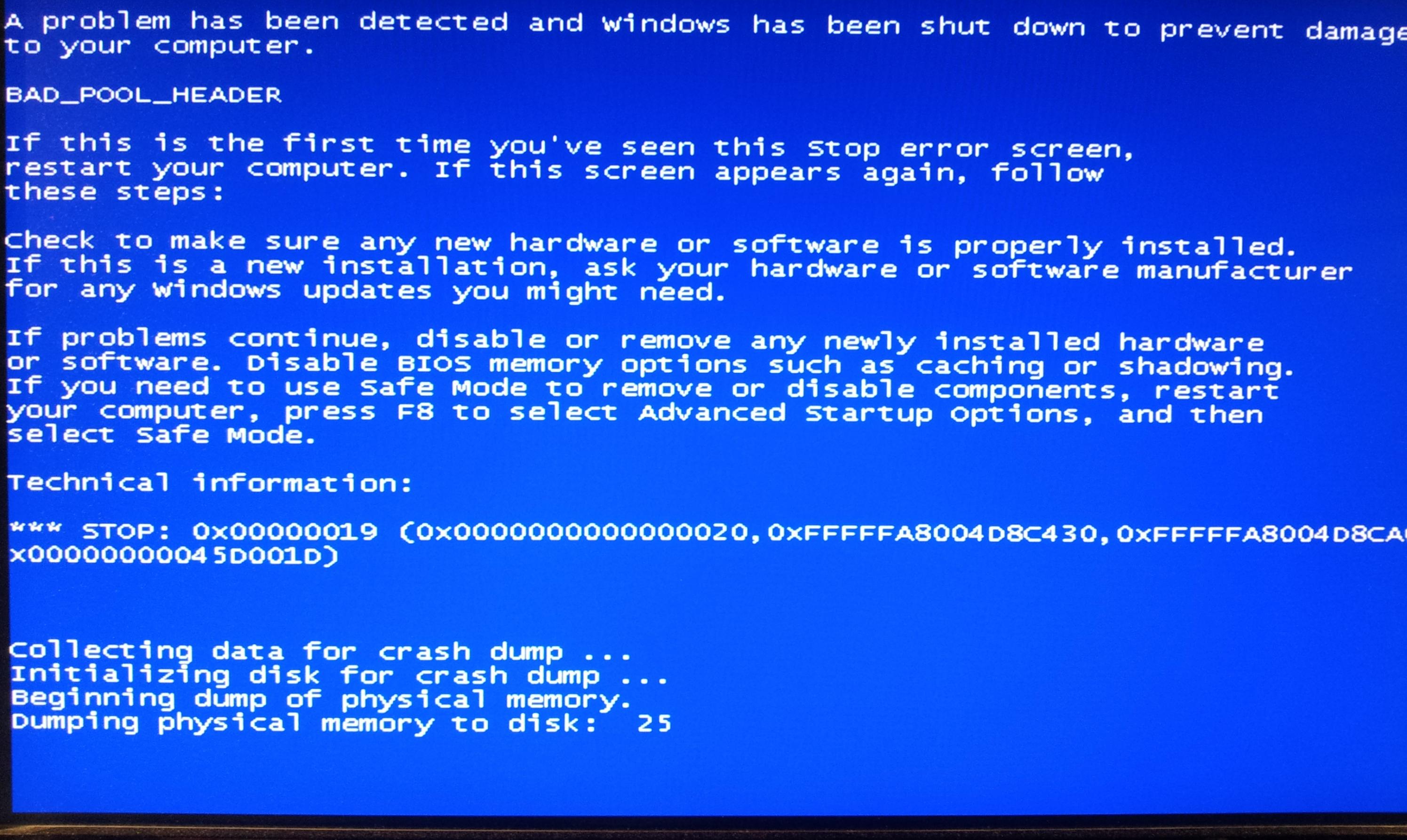 Als ich ein paar Tage später den PC wieder startete, erschienen ständig Bluescreens. Manchmal bevor ich mich überhaupt anmelden konnte, manchmal kurz danach. Die STOP-Fehlermeldungen variierten auch häufig.