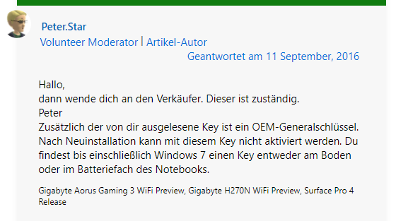 auf Windows 10 update, dann hab ich ja Windows 10. Das sollte ja ohne Key eingabe funktionieren, bzw. er nutzt dann ja den OEM Key zum kostenlosen upgrade. bekomme ich dann einen neuen KEY den ich notieren und auf die SSD übertragen kann?