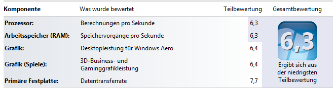 Meine vorherige Festplatte (Samsung 2.5" 500GB) hatte einen Leistungsindex von 5.8.