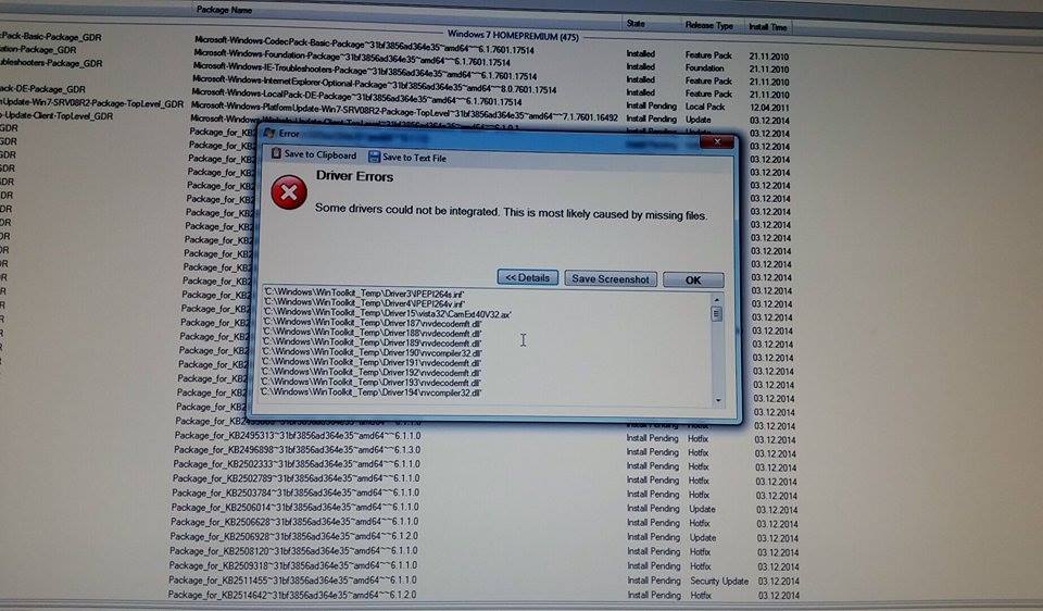 Ich wollte mit dem Win Tool Kit eine Windows 7 64 Home Premium Iso mit Updates und Treibern erstellen.