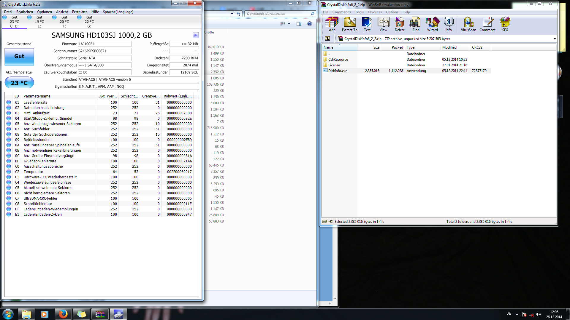 - Poste Screenshots von CrystalDiskInfo von allen Platten (Fenster ganz aufziehen, so dass man alle Attribute sieht).