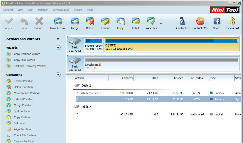 So wie ich es verstanden habe, muss man Platz hinter der Partition schaffen, damit C: erweitern werden kann. Ich habe nur noch eine system reservierte Partition. Muss/Kann ich sie auch löschen, damit ich C erweitern kann?