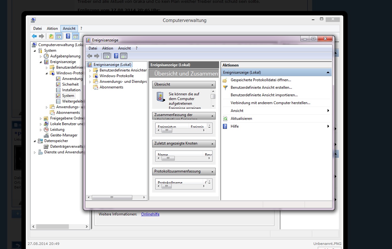 Ja es gab mal einen Systemabsturz um genau zu sein vor 2 Tagen dort hängte sich (mehrere Chat Fenster waren in Opera offen, Amazon, Ebay kleinanzeigen, yoomox marketplace, Youtube* mein PC auf in dem das Bild einfror was heißt einfror es kam oben der *runde blaue ladekreis* der immer kommt wenn ein Browser etc zulang braucht zum nachladen, dann wollte ich Opera Schließen und neu starten, ging aber nicht dann fror Opera (ein) dann wollte ich in der Taskleiste *o&o Defrag* beenden das in der Methode Access nebenbei lief doch als ich dieses Öffnete fror auch dieses ein,