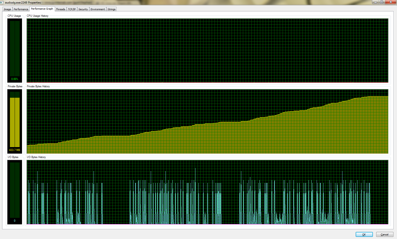 der prozess audidg.exe verbraucht 1,8 gb ram (von 8)