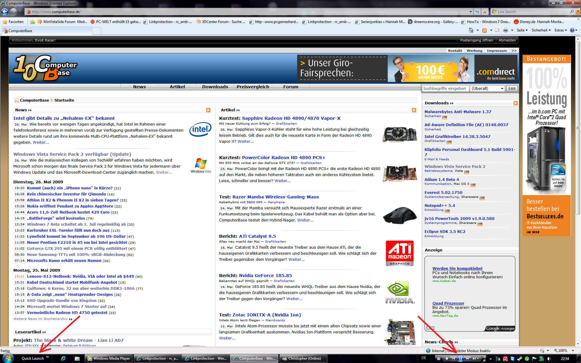 Was mich noch stört ist, dass ich in der schnellstart-leiste wo sich das "Firefox" Symbol befindet, wenn ich drauf klicke kein neues Fenster öffnet sondern garnix passiert. Naja muss mir noch angewöhnen die über "Datei" > "Neues Fenster" zu öffnen oder kann man das iwie einstellen?