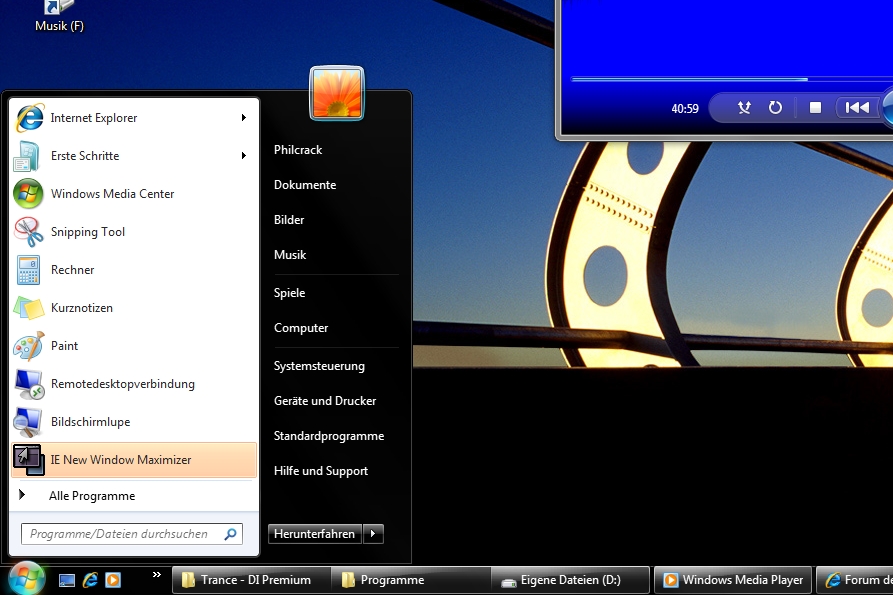 Andere Programme verweigern leider den Dienst. Windows Media Player hab ich noch nicht gefunden. Desweiteren in der Taskleiste Programme mit rechtsklick beenden. Da muss man jetzt direkt draufklicken. Naja, ich beschwere mich nicht.