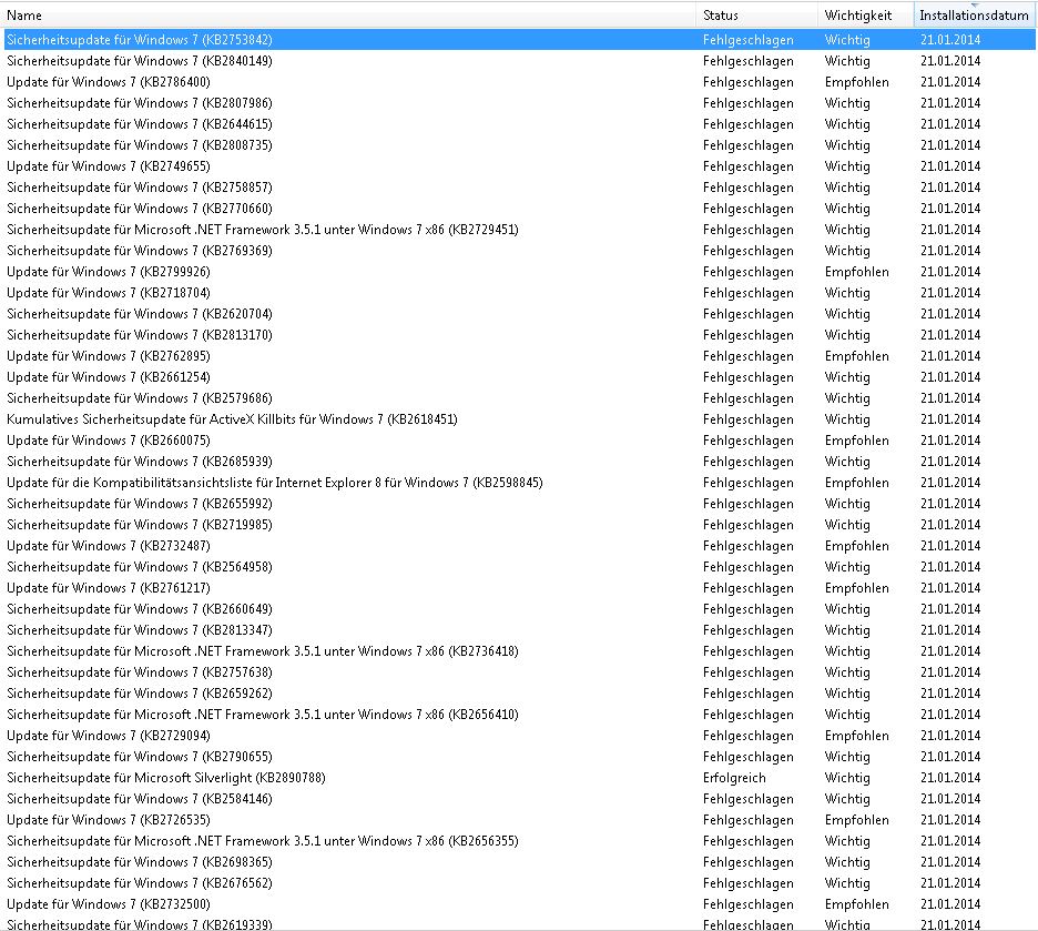 Ich habe bereits das Windows Update Fix-It mehrmals ausgeführt, mit folgendem Resultat: