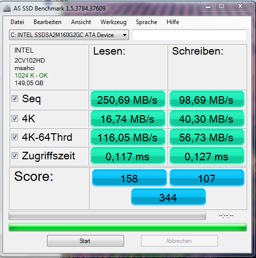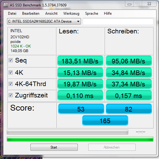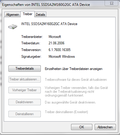 Interessant wäre vorallem welcher AHCI Driver in Kombination mit meiner 160GB Intel X25-M G2 Postville verwendet werden sollte.