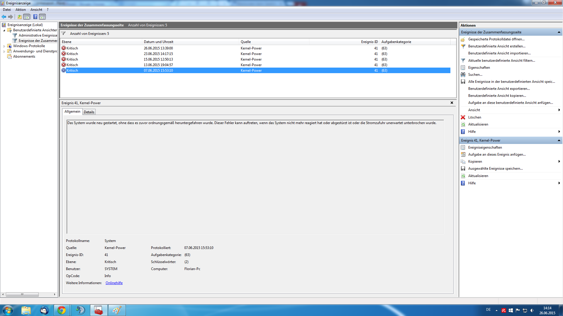 Zur besseren Problemlösung werde ich noch eine Screenshot der Windows Ereignis Anzeige hochladen.