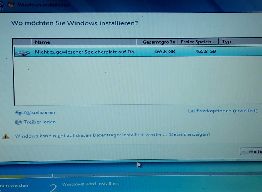 - Wenn ich Windows neu installieren möchte erscheint folgendes Bild: