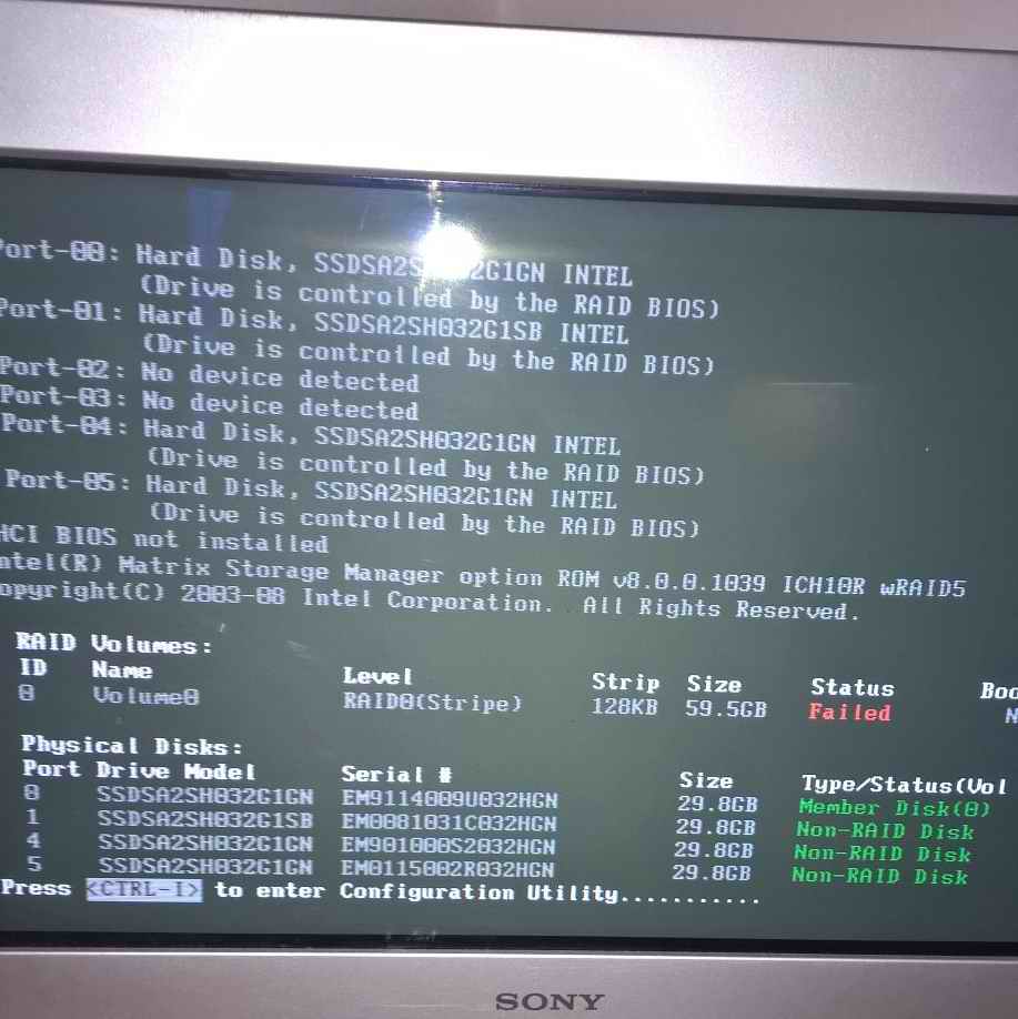 beim booten erscheint bei der Systemfestplatte Raid 0 Stripe und Status failed Bootable No