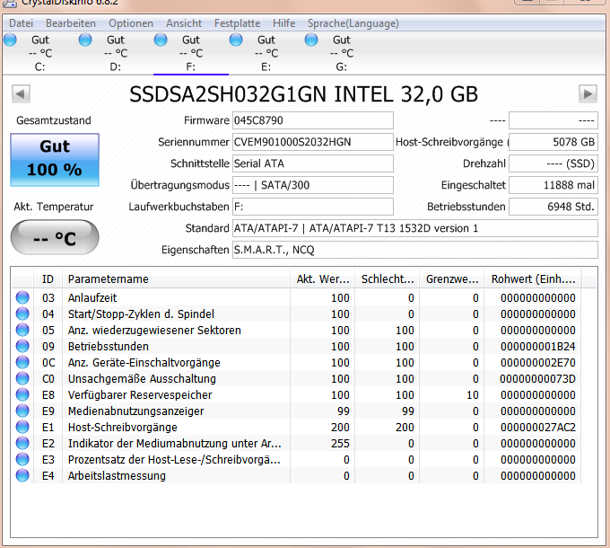 Tip: im CrystalDiskInfo die Seriennummer (Optionen) ausblenden bevor du Bilder postest