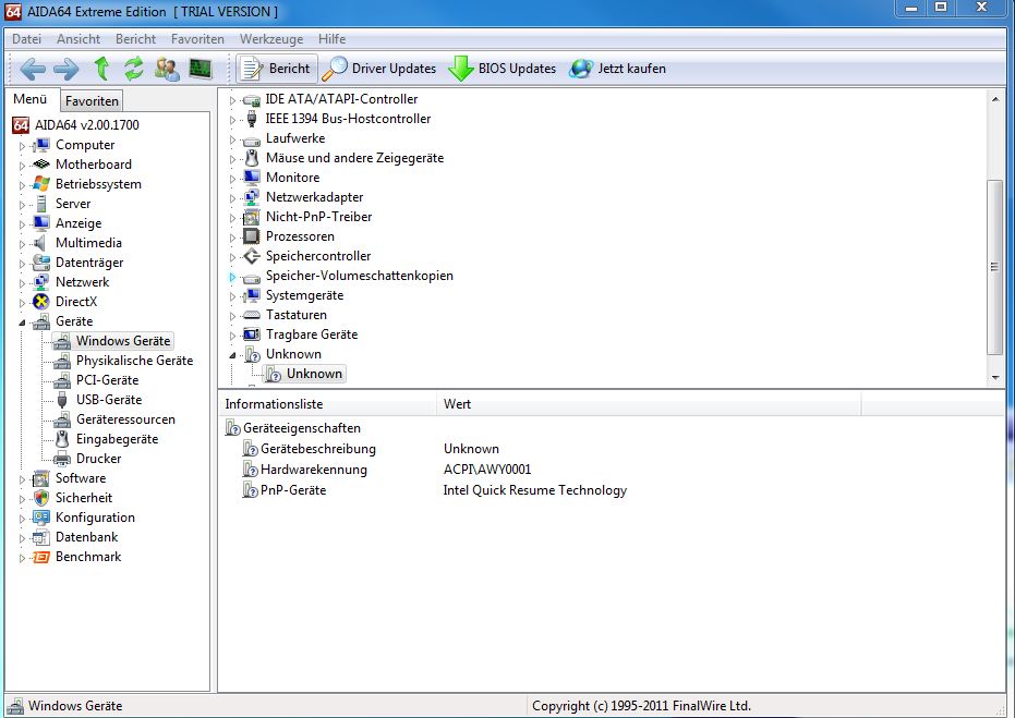 Den Geräte-Manager öffnen, bei den den unbekannten Geräten oder denen mit Ausrufe-/ Fragezeichen oder gelb unterlegten Geräten einen Rechtsklick machen und dort auf Eigenschaften. Hier mal als Beispiel