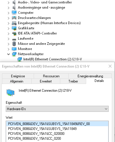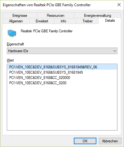 da werden die Hardware-IDs angezeigt: