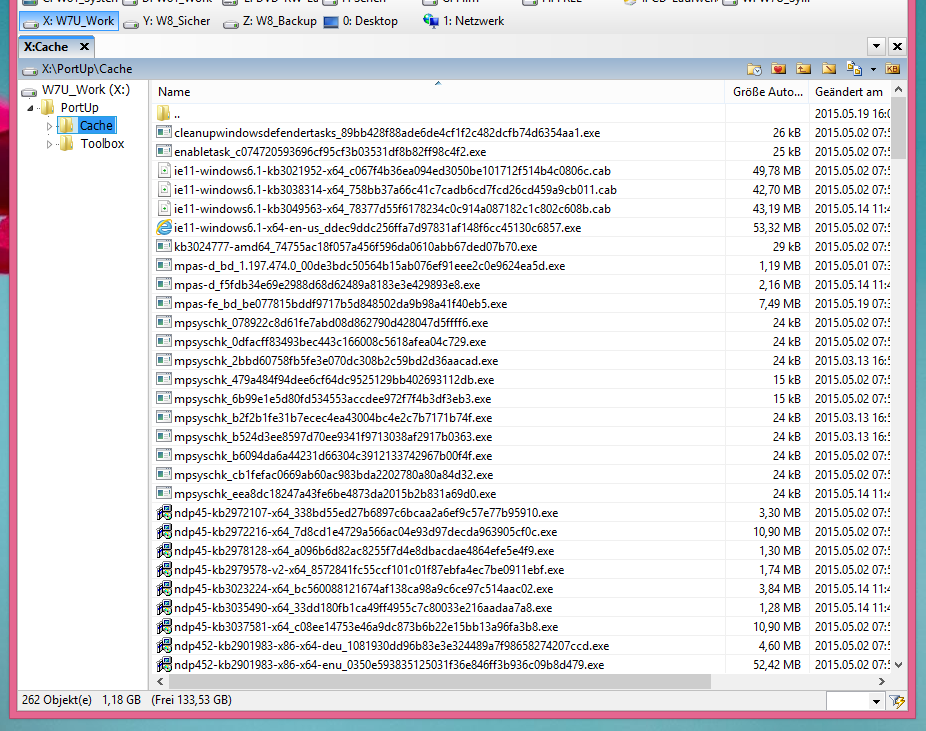 Nach SP1 gab 262 Windows Updates, alle abgespeichert mit Porttable Updates.