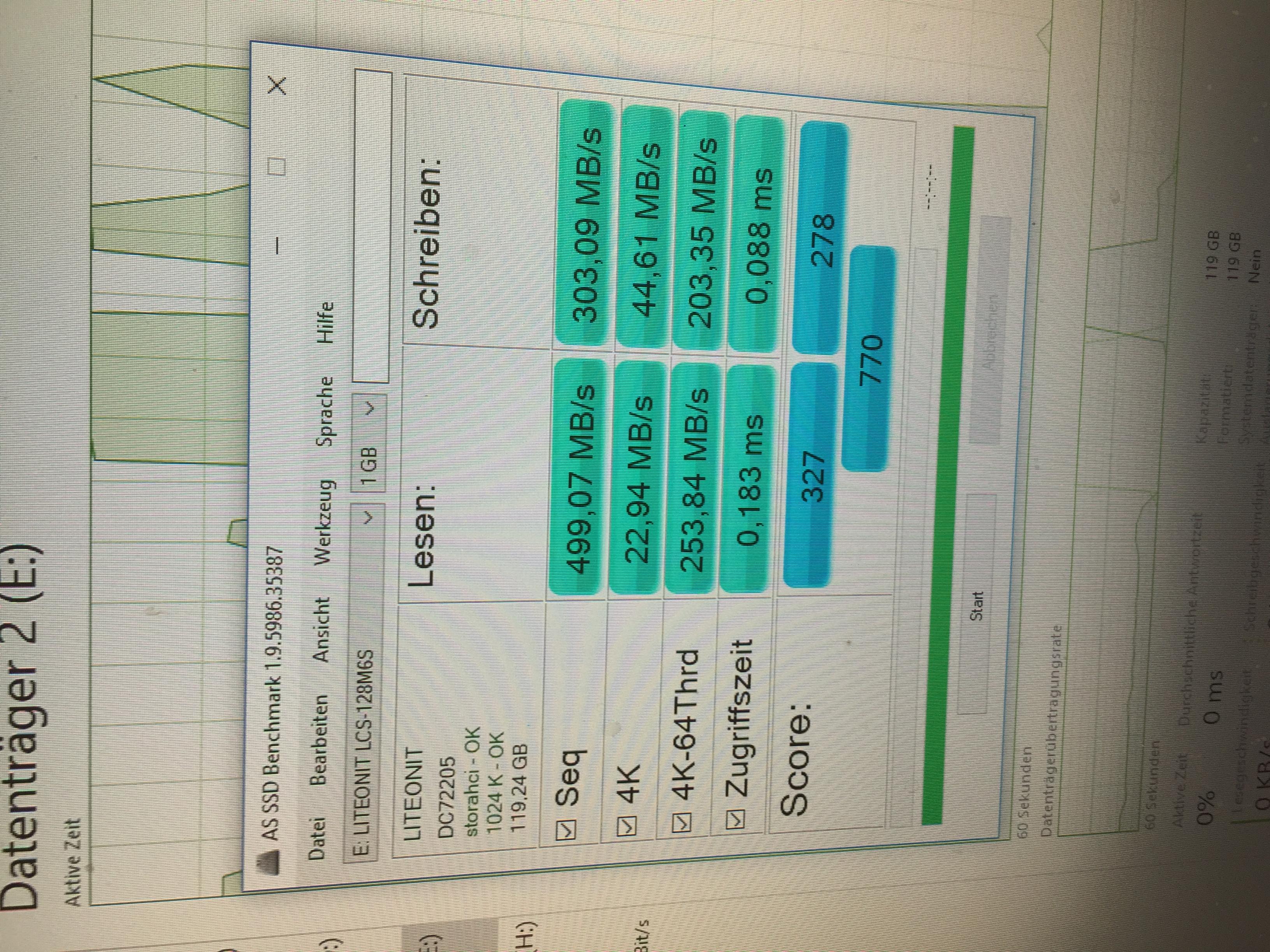 Habe mal schnell Windows 10 installiert und das gleiche Problem ...andere ssd siehe foto ... also ist meine Platte schrott