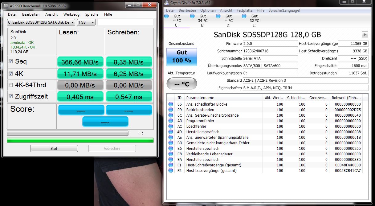 SSD 1. SanDisk 120 GB Windows Partion 34GB frei