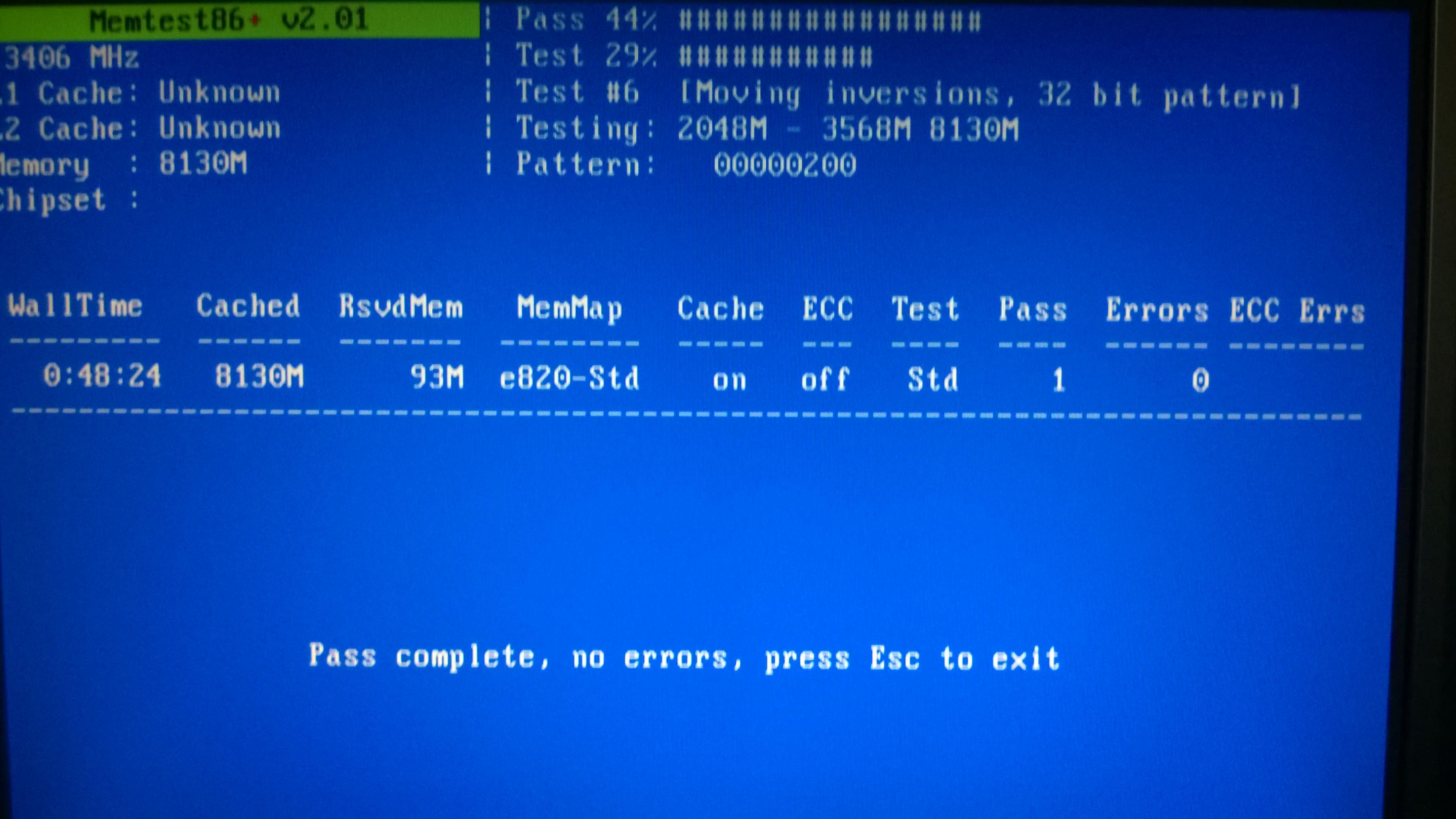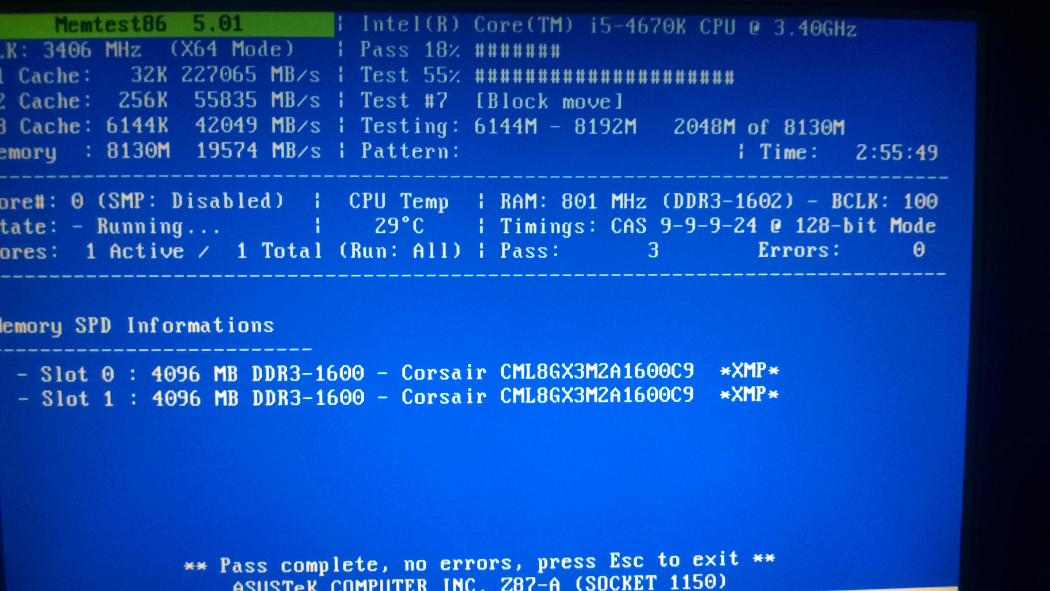 Ich dachte es liegt an meinen Ram Riegeln ich hab zwei Stück jeweils mit 4GB und sie sind von Corsair. Ich habe deshalb Memtest86+ auf meine Riegel laufen lassen und sie somit auf Fehler geprüft ( auch ein Bild Dazu ) Der Test hat 0errors Gefunden also keine Fehler an meinen Riegeln ich habe im Internet gelesen das man diesem Test auch trauen kann und der nicht lügt.