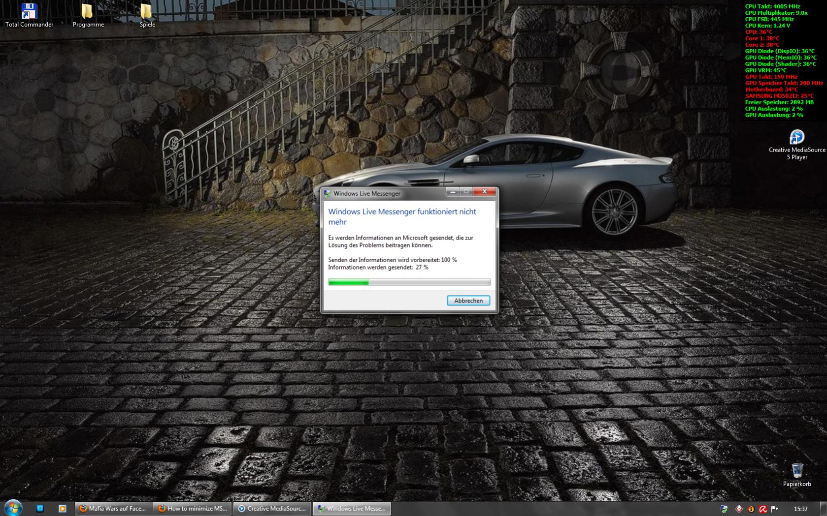 Doch nach einem Neustart des Rechners öffnet sich der MSN Messenger nicht mehr und es kam nur eine Meldung "Messenger funktioniert nicht, Probleminformationen werden gesendet".