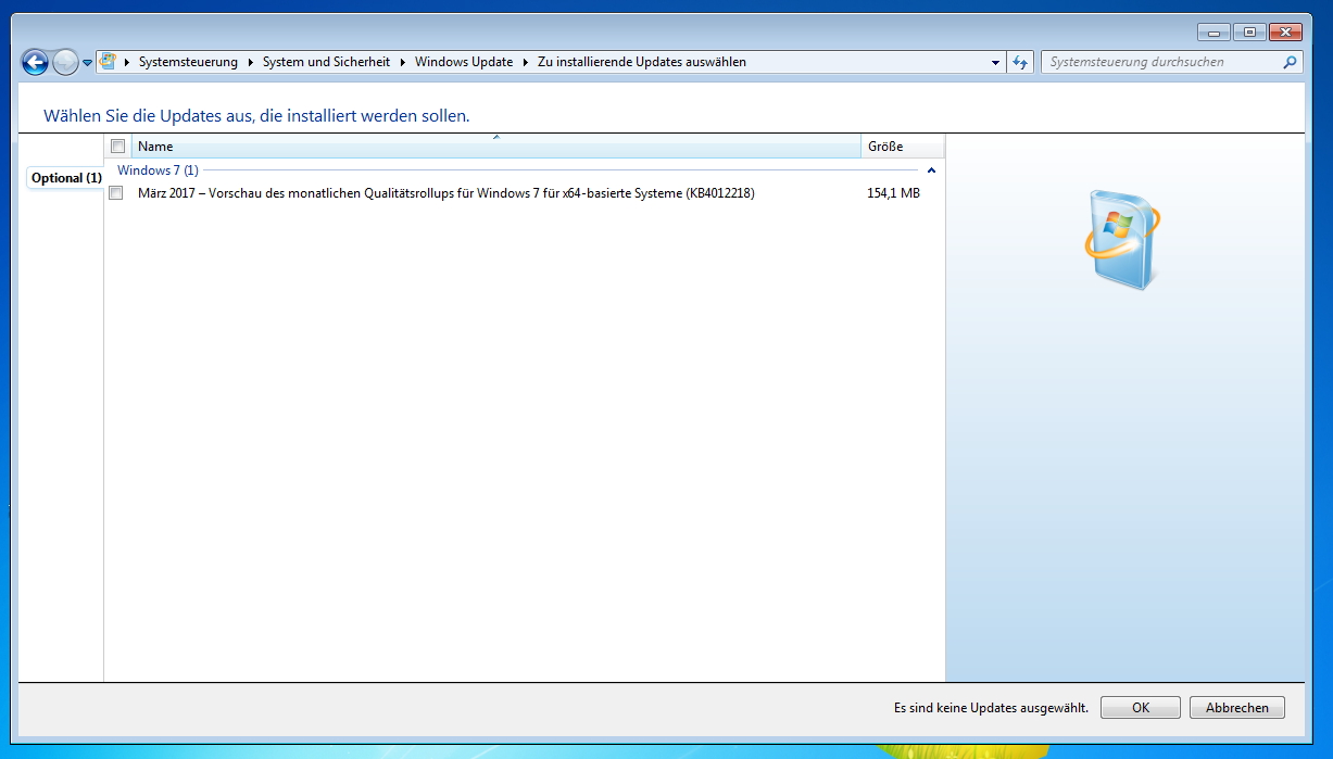 Der Titel: "März 2017 - Vorschau des monatlichen Qualitätsrollups für Windows 7 für x64-basierte Systeme (KB4012218)"