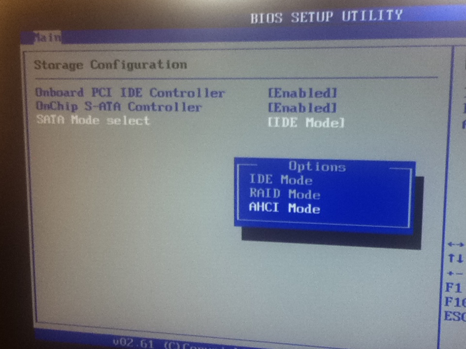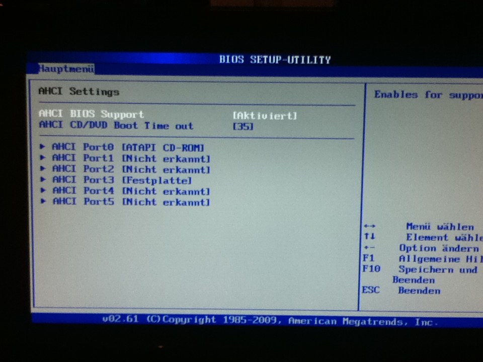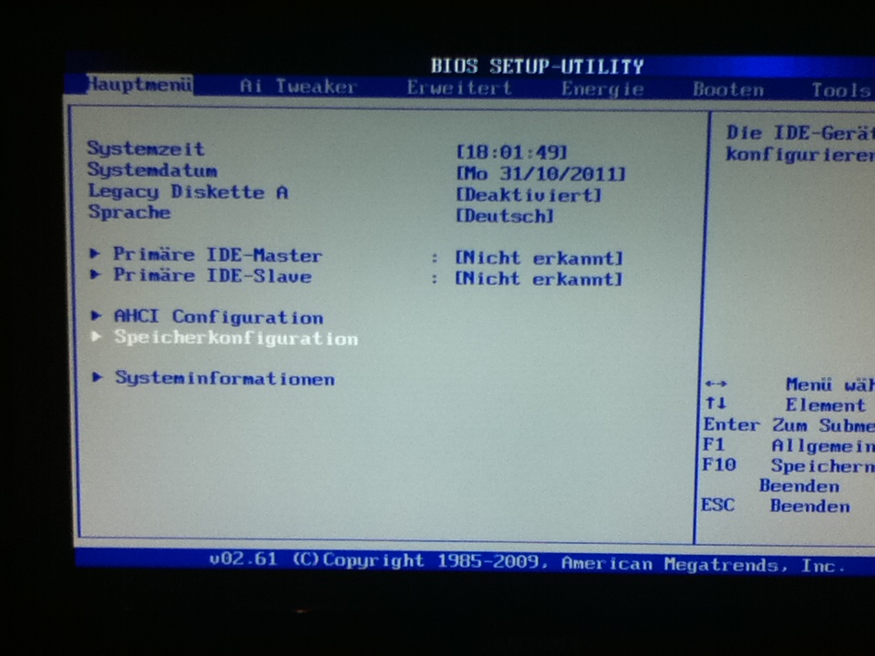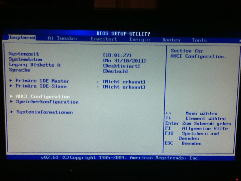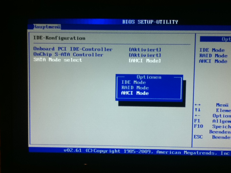 9. Danach bios Geupdatete und neu hochgefahren (ide mode)