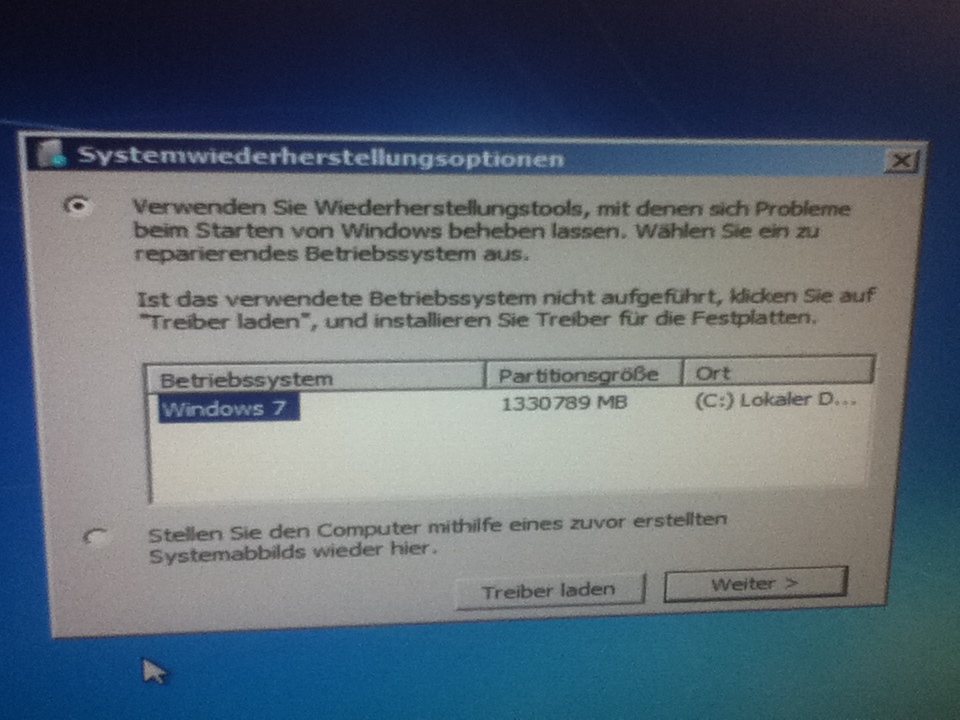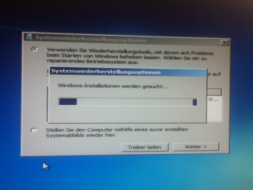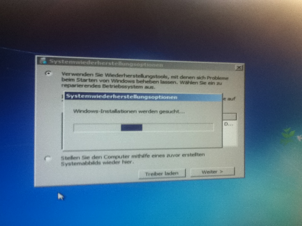 6. windows 7 STart DVD eingelegt und fehlersuche gestartet (Siehe Anhang) (festplatte immer noch