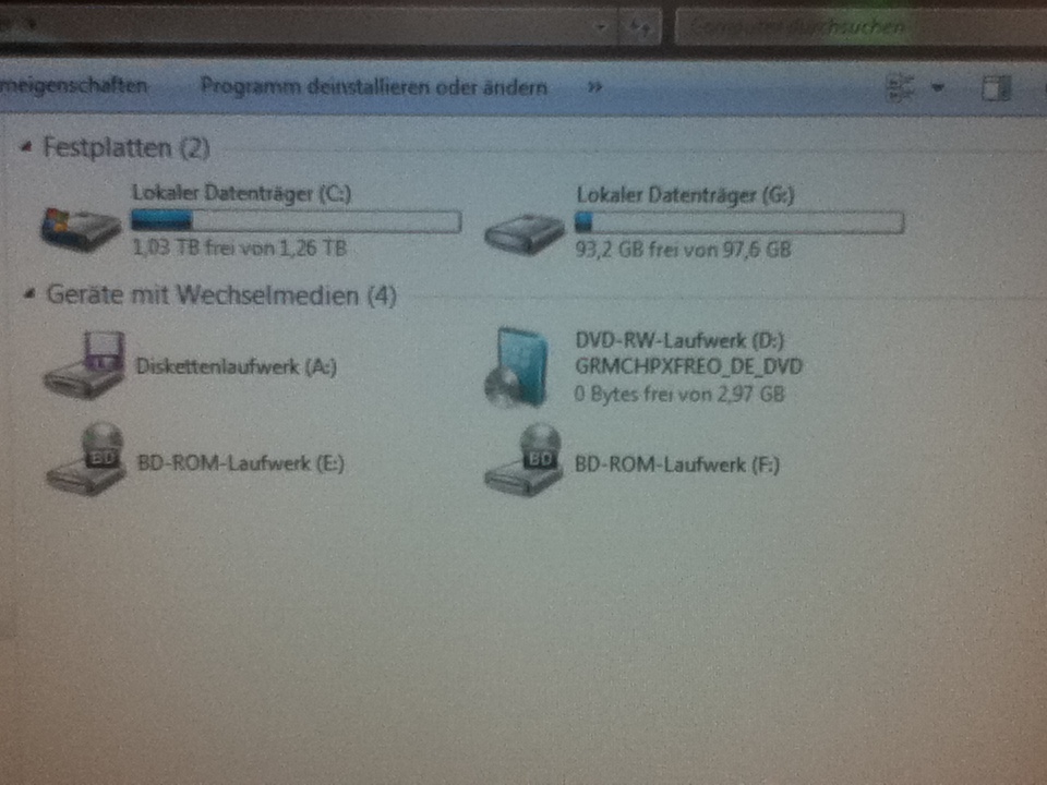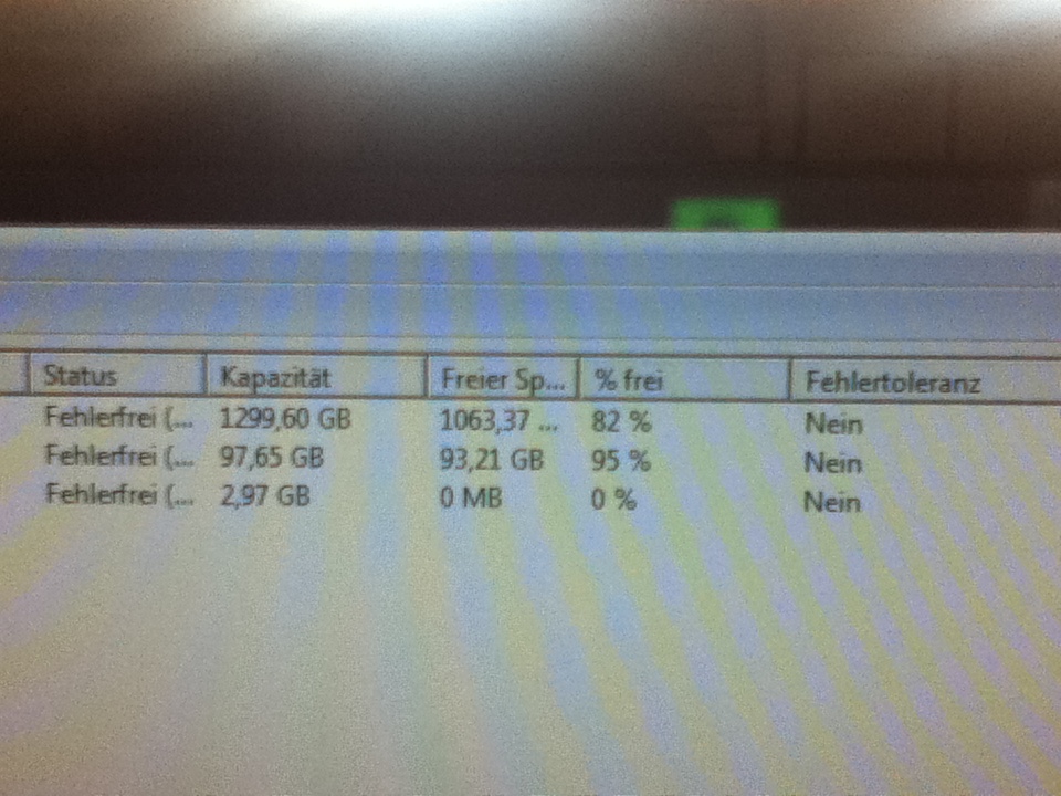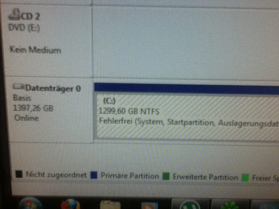 3 Dann wurde die Festplatte partioniert 1,4 TB windows 7 ca 100GB xp