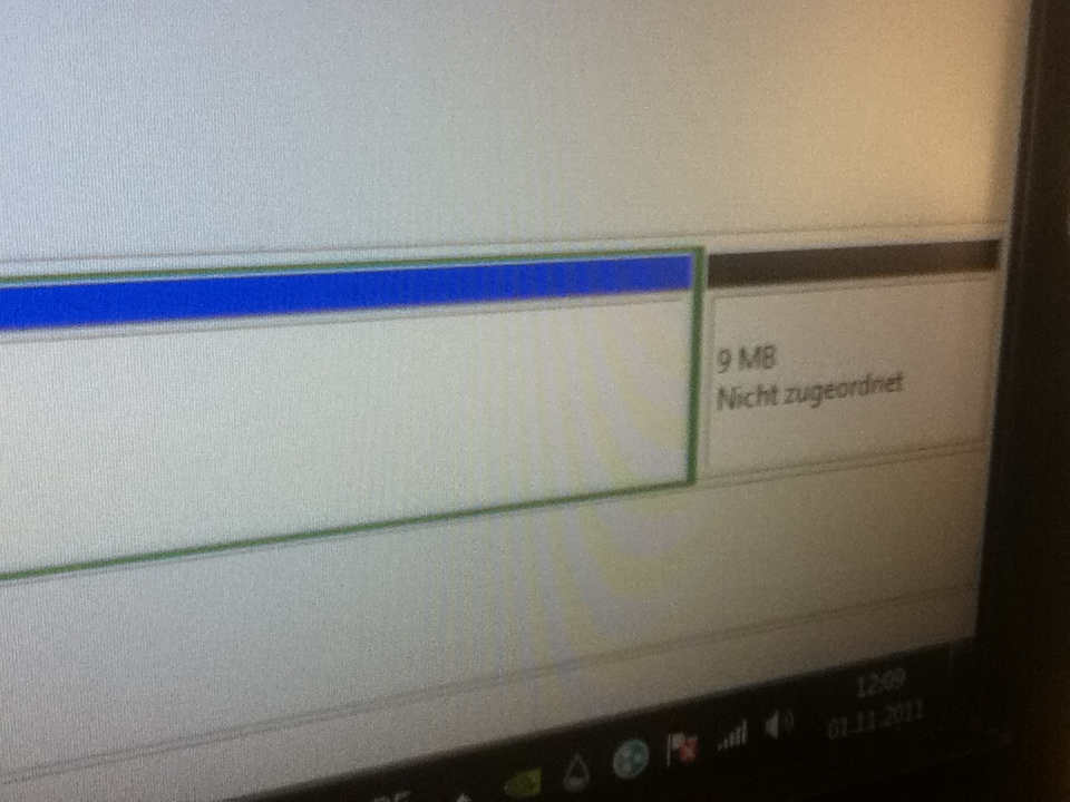 Wenn du in Windows 7 rein kommst, müßte es dir auch möglich sein, uns ein Bild aus der Datenträgerverwaltung zu posten.