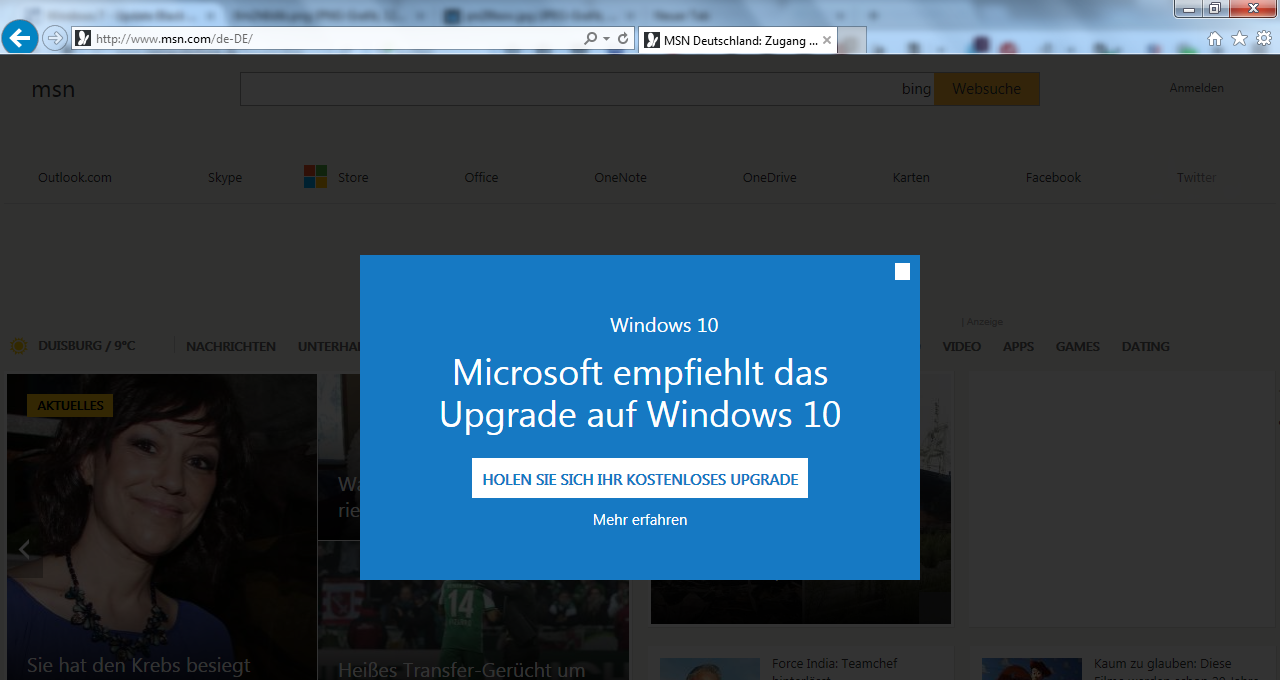 Holen Sie sich schon heute das Windows von morgen: kostenlos! <a class="accentBackgroundText accent-light-color" href="http://go.microsoft.com/fwlink/p/?LinkId=616548" title="So erhalten Sie Windows 10">So erhalten Sie Windows 10</a>