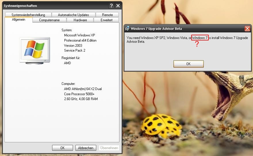 Welch Ironie! :D "Sie benötigen Windows 7, um das Testprogramm zu installieren, dass ihnen sagt, ob Windows 7 läuft" hahaha ^^