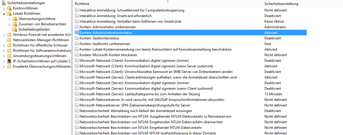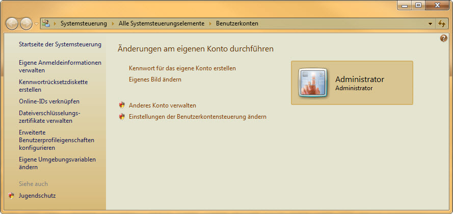 Danach habe ich das Administratorkonto aktiviert, und das normale Konto gelöscht.