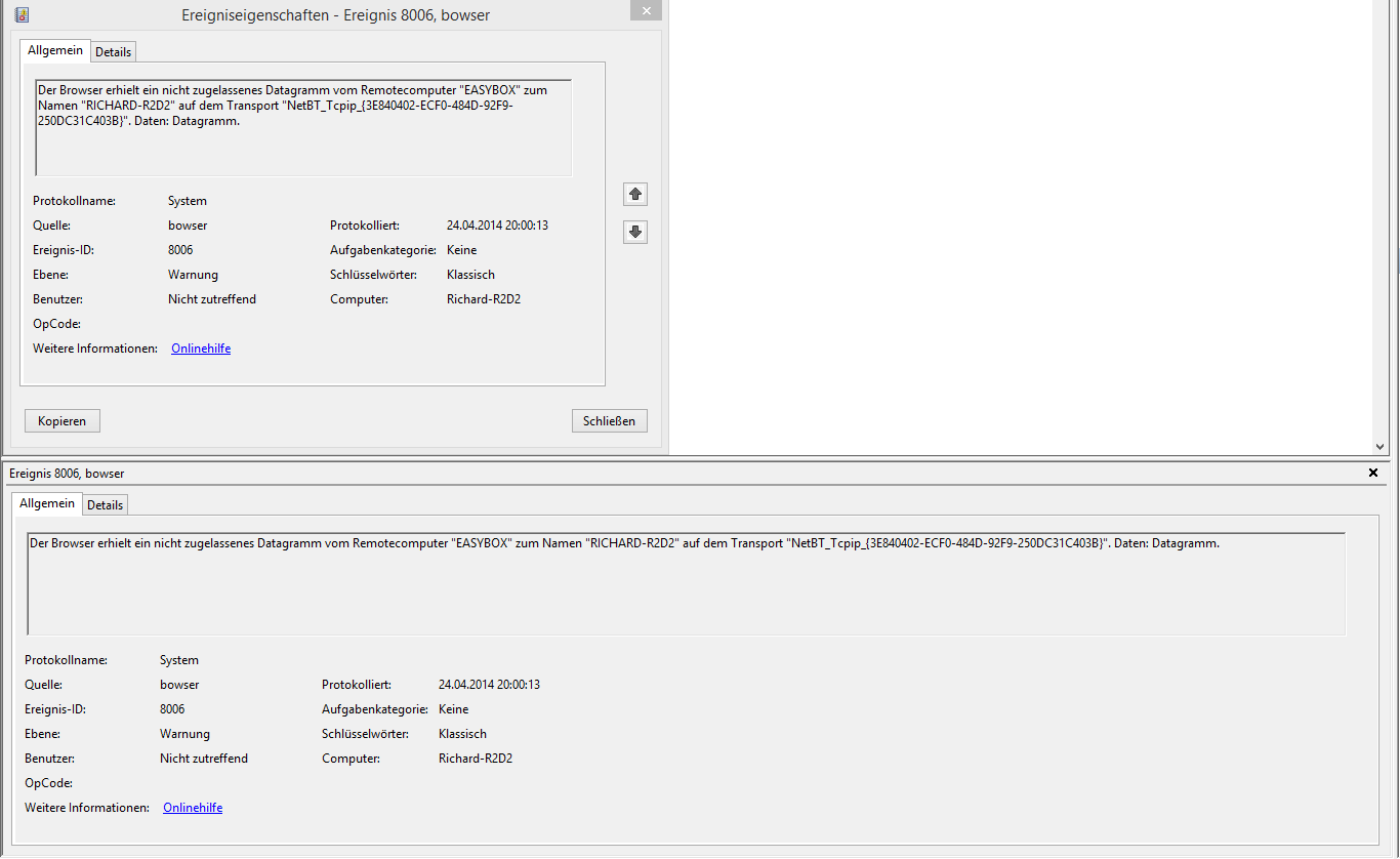 Windows 8.1 Event ID 8006 / 8016 - EasyBox!