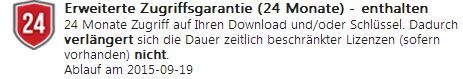 "Dadurch verlängert sich die Dauer zeitlich beschränkter Lizenzen (sofern vorhanden) nicht. "